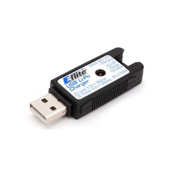 Caricabatterie per batterie Lipo 1S 100-150mA con connettore tipo micro E-flite o FullPower.Si connette direttamente ad una presa USB ed eroga una corrente di 350mAh