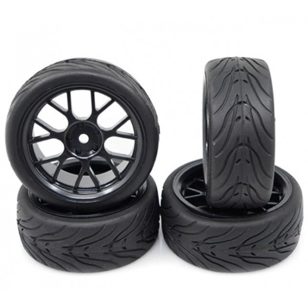 Il set di pneumatici Yeah Racing Spec-T offrono sia un bell'aspetto che una resistenza elevata ad un prezzo conveniente! Gli inserti evitano che il pneumatico si deformi durante la percorrenza in curva, anche a velocità elevate, esagono da 12 mm per adattarsi alla maggior parte delle auto 1/10 touring