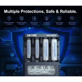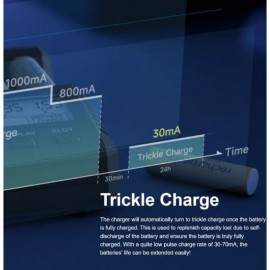 The NC1600 charger is more than just fast. Thanks to its modern and highly precise chip, it's also considerably smarter when it comes to charging NiMH batteries of sizes AA and AAA. With 4 independent charging slots, an 8-second auto-start, and 3 operating modes, it transforms what would otherwise be a tedious task into a pleasant and relaxed experience without much thought. The LCD screen also provides a compact overview of the charging status. Once the battery is fully charged, the charger automatically switches to "trickle charge." This is to replenish the capacity lost due to the self-discharge of the battery and ensures that the battery is truly fully charged. With a relatively low pulse charging rate of 30-70mA, the lifespan of the batteries can be easily extended!