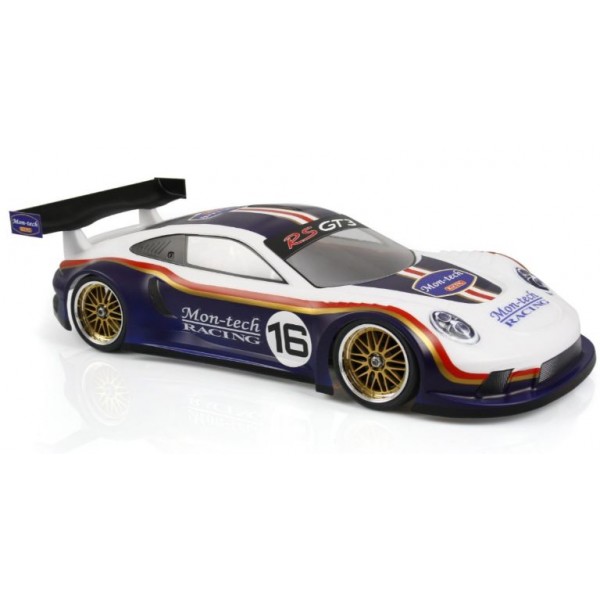La carrozzeria RS-GT3 è stata progettata e realizzata dall’ufficio di ricerca e sviluppo Mon-tech Racing che lavora su modelli 3D reali, con stampi fresati con macchine CNC per avere la massima precisione nei particolari e per fornire un prodotto finale il più dettagliato possibile.