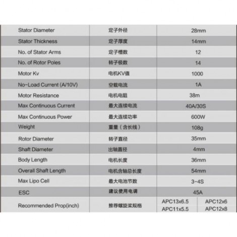 2300 gr a 4S con elica 11x5,5 con assorbimento massimo di 38,9 A