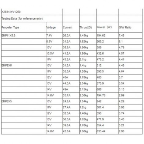 2060 gr a 3S con elica 11x5,5 con assorbimento massimo di 45.5 A