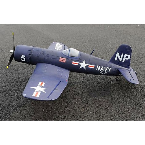 Dynam RC recreated this American Military Aviation marvel with its newest F4U Corsair. The plane is constructed of durable EPO foam. The wings span 1270mm and the fuselage length is approx 1066mm. The overall wing loading boasts 50g/dm2. The retractable rotating landing gears tuck away in the wings to provide awesome aerodynamic performance. The large prop is being thrown by a BM3720-KV500 Brushless Outrunner motor supported by a Detrum 40A ESC. Control surfaces are handled by four 9gram detrum servos for precise movement. A steerable tail wheel allows the pilot to taxi around the runway. Powering all these electronics is a 14.8v 2200mah Li-Po Battery. The blue paint scheme is vivid and stays true to the F4U scheme. A scale pilot in the cockpit finishes off this beautiful Dynam F4U Corsair.