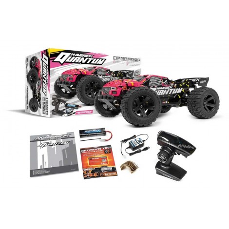 Il Quantum XT viene fornito con un robusto motore brushed 550 MM-550 15T ad alta coppia, variatore elettronico MSC-30BR-WP impermeabile LiPo compatibile e servocomando dello sterzo MS-06WR resistente all'acqua , il collaudato radiocomando 2,4GHz MTX-244 con ricevente dotato di fail safe, la batteria NiMh Maverick Element 7,2V da 2000mAh e il caricabatterieUSB Delta-Peak.