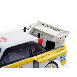 Sono stati prodotti solo 214 esemplari della Sport Quattro in scala 1:1, ma in collaborazione con Audi ci siamo assicurati i diritti di licenza per riprodurre l'auto in numeri leggermente più grandi, con un prezzo e dimensioni più facili da usare! La nostra passione per tutto ciò che riguarda gli sport motoristici e i rally traspare in questa nuova versione, abbiamo dedicato molto tempo a ricreare il corpo nel modo più accurato possibile in una versione 1/24 e con la sua potenza Brushless da 8000 kv, 4WD permanente, 2S LiPo compatibilità e preciso apparato radio FHSS da 2,4 GHz, è il regalo perfetto per qualsiasi vero appassionato di benzina o acquisto per gli appassionati di rally storici in tutto il mondo.