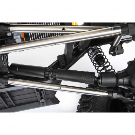 SCX6™ Jeep® JLU Wrangler 4WD porta lo "scaling" Axial® al livello successivo. Basato sul collaudato SCX10™ III, lo chassis SCX6™ potrebbe essere considerato il suo fratello maggiore. È progettato per una durata e prestazioni estreme con gli assi AR90. Per una maneggevolezza ottimale, il telaio ha una configurazione di sospensioni anteriori Panhard a tre bracci e posteriori a quattro bracci. La trasmissione offre marce alte e basse fuori dalla scatola, con un servo Spektrum ™ S614 Metal-Gear incluso e installato per il collegamento a due velocità.