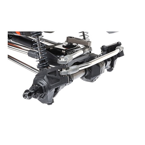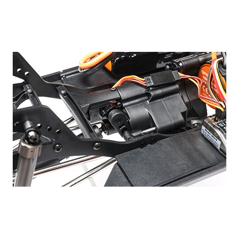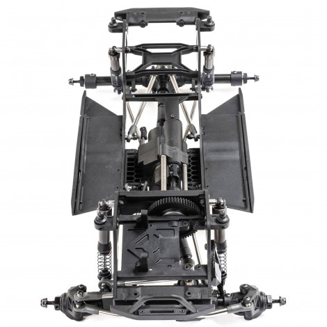 Il telaio Pro leggero e altamente regolabile è un design specifico per comp ottimizzato per arrampicata, salita laterale e breakover. Gli assali in più pezzi sono costruiti con tubi in acciaio e possono ospitare un servo montato sul telaio (CMS) o montato sull'asse (AMS). Il supporto del motore posiziona il motore in basso e in avanti nel telaio per una migliore distribuzione del peso. Consente inoltre di ridurre l'assale posteriore tramite servo o di bloccare manualmente l'assale posteriore in 1:1 o underdrive.