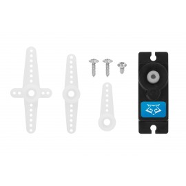 Servocomando digitale micro da 9 g con ingranaggi in plastica per piccoli aerei elettrici e alianti. Coppia 1,3 kg·cm, velocità 0,12 s/60° a 4,8 V, dimensioni 23x12x27,3 mm, alimentazione 4,8–6,0 V.