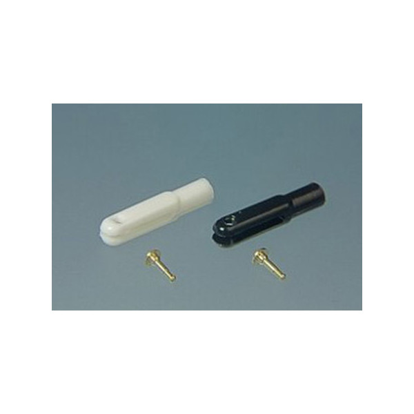 Mini forcella per parti mobili dei piccoli aeromodelli, costruzione in nylon e perno metallico da 1 mm.