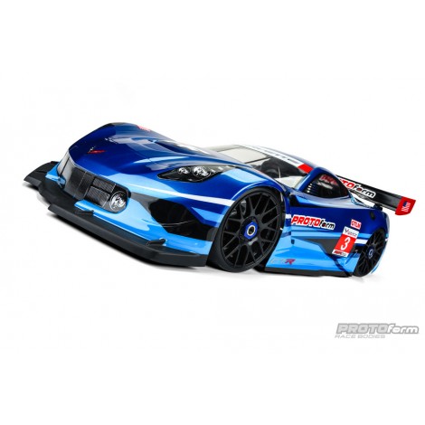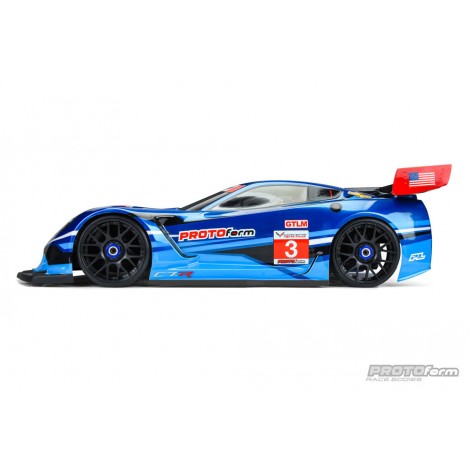 PROTOform brings Corvette Racing’s championship heritage to 1:8 GT Class racing with the officially-licensed Corvette C7.R race body. From the signature Corvette muscular stance and swept-back roofline, to the large front splitter and side vents, every detail of the 1:1 race car is captured to add scale realism to the world of 1:8 GT. The extensive decal sheet lets you deck out your C7.R with Corvette branded windshield headers, “Jake” skull hood logo, number plates, and USA flags. Included with the body is an add-on rear wing, secured with three oversized nylon screws and featuring 2 trim-lines and spill-plate sizes: a lower line for sanctioned racing, and an upper line for low-grip club racing.